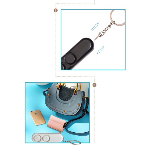 Гучний звук 120 ДБ: цей сигнал брелока може видавати гучний звук, щоб привернути увагу інших навіть на відстані, що може ефективно налякати зловмисників у небезпеці та звернутися за допомогою поблизу.