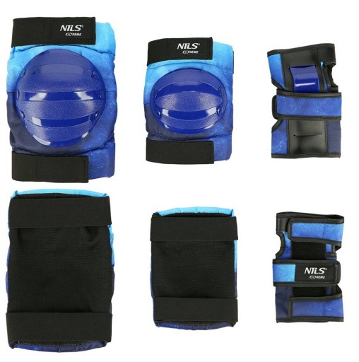 H734 Nils Extreme - це набір протекторів для зап'ястя, ліктів і колін. Виготовлений з високоякісних матеріалів. Оболонка виготовлена з міцного та легкого матеріалу, який забезпечує максимальний захист зап’ясть, ліктів і колін від травм. Всі протектори оснащені застібкою-липучкою, яка утримує протектори в потрібному місці. Створений, щоб користувач почувався не лише безпечно та комфортно, але й стильно завдяки оригінальним кольорам та модним візерункам.