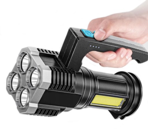 Акумуляторний USB-ліхтарик - це потужний ліхтарик з 4 світлодіодами SMD3030 і боковим ліхтарем COB LED.