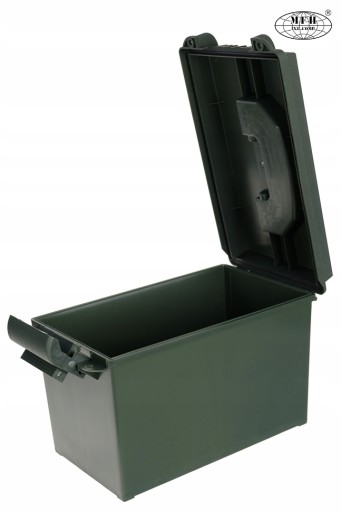 Ящик для військової амуніції. Продукт німецького бренду MFH Int.Comp. Пристосований для транспортування та зберігання боєприпасів до 50-мм гармати. Ідеально підходить для зберігання цінних речей, інструментів або повсякденних речей. Полегшує організацію спорядження в подорожі. Стійкий до механічних пошкоджень і зовнішніх факторів, стійкий до дощу і довговічний. Захищає вміст від пошкоджень. Заповнений піною він придатний для транспортування цінної електроніки.