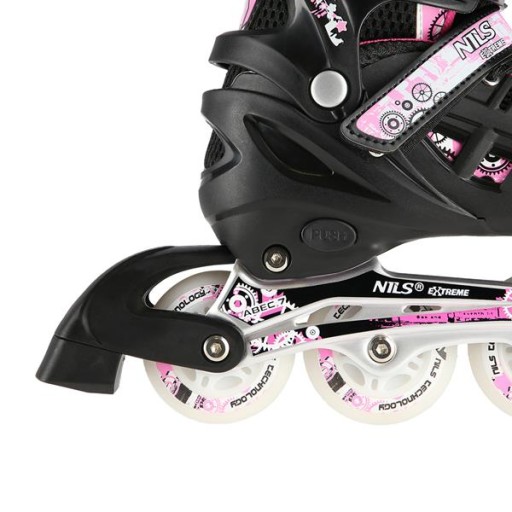 Роликові ковзани NH10905 - це справжнє задоволення від катання. Завдяки можливості переміщення додаткового колеса на задню вісь, роликовий ковзан функціонально перетворюється на роликовий ковзан. Таке рішення допоможе самим маленьким фігуристам зробити перші кроки в цьому виді спорту. У свою чергу, установка додаткового колеса на передню вісь перетворює виріб на роликовий ковзан. Ролик оснащений спеціальним алюмінієвим бігуном і гальмом, що забезпечує безпеку під час катання. У свою чергу, колеса та підшипники класу ABEC7 забезпечують нижчий опір коченню, що означає більш швидку їзду.
