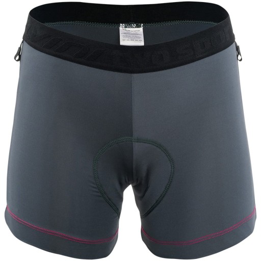 Жіночі боксери з вело вставкою. Вони мають естетичний шнурок на талії, який забезпечує правильну посадку, і три петлі, які дозволяють прикріпити їх до штанів для гірських велосипедів. Функціональний матеріал, з якого вони виготовлені, пропускає повітря та швидко сохне.