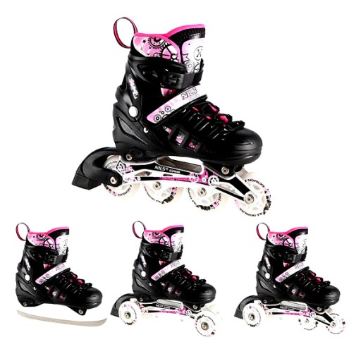Роликові ковзани 4в1 Nils Extreme NH10905 чорно-рожеві р. 39-42