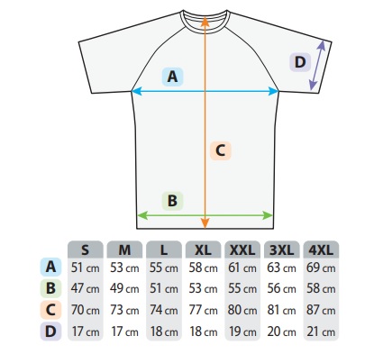 Сучасний приталений крій, з рукавами реглан, завдяки чому футболка ідеально сидить як на чоловічій, так і на жіночій фігурі. Використання волокон coolmax (винайдених компанією DuPont) призвело до чудової повітропроникності та еластичності матеріалу (UPF 40+), що, у свою чергу, забезпечує дуже високий комфорт використання.