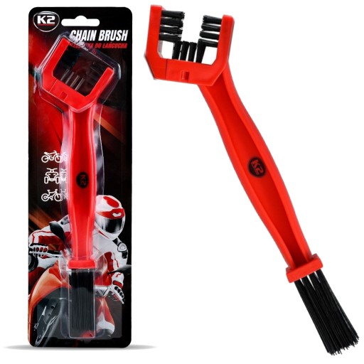 Універсальна щітка для чищення ланцюга K2, призначена для чищення приводних ланцюгів мотоциклів, мопедів, велосипедів (в тому числі гірських) і квадроциклів.