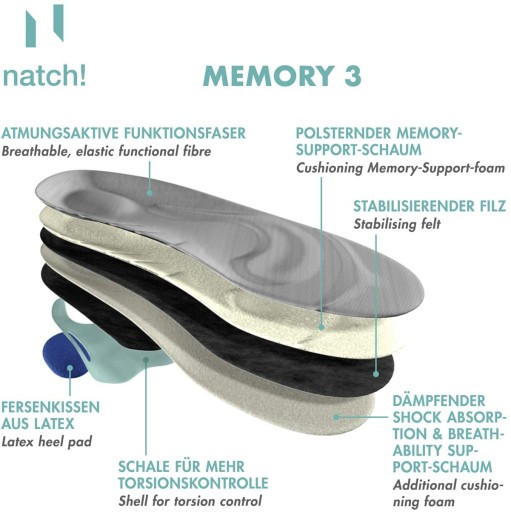 Підтримує поставу під час ходьби та бігу. ТПУ посилення з повстяним посиленням покращує положення стопи. Піна з ефектом пам’яті амортизує стопу, а в поєднанні з піною SHOCK ABSORPTION & BREATHABILITY SUPPORT забезпечує відмінний кліматичний комфорт. Латексна подушка під п'ятою зменшує тиск під час ударів і, отже, дбайливо впливає на суглоби та зв'язки.
