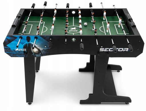 Секторний настільний футбол, завдяки своїй конструкції, відмінно підійде для динамічних ігор. Широкі ніжки столу підвищують стійкість настільного футбольного столу. Вирівнювальні ніжки, розміщені під ніжками столу, дозволяють ефективно пристосувати стіл до землі. Є можливість розкласти стіл, щоб він не займав місце на перервах.