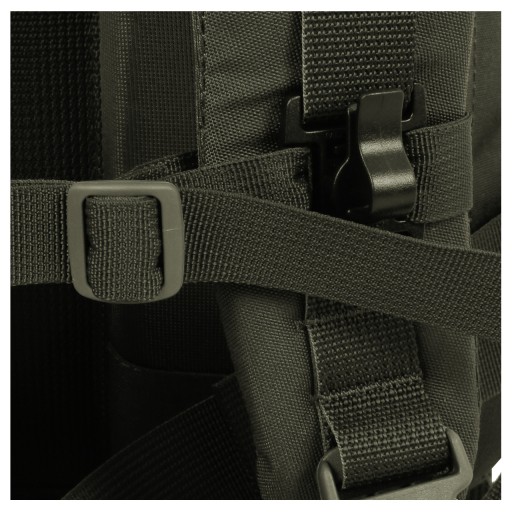 Бічні стінки також мають дві ремінці регульованої довжини, закріплені пряжками Fastex 30 мм, які використовуються для стиснення рюкзака та можуть бути корисними для стабільного кріплення спорядження, яке виноситься на вулицю - куртки, простирадла, спальника або навіть камуфляжу чистий.