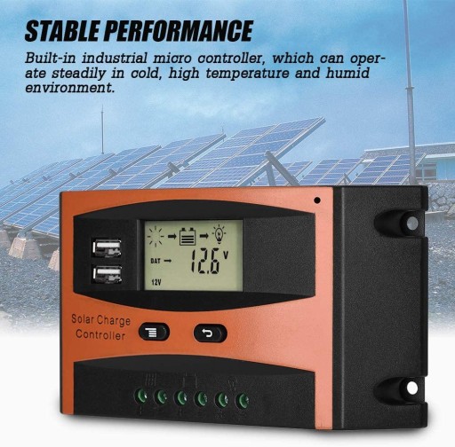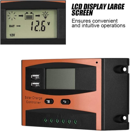 Повний захист забезпечує захист від перевантаження, перерозряду, перевантаження, короткого замикання і зворотного підключення. Подвійний вихід USB, легке підключення до мобільних телефонів до максимального струму 25 А, дозволяє швидко та ефективно заряджати мобільні телефони. Подвійний вихід USB, легке підключення до мобільних телефонів до максимального струму 25 А, дозволяє швидко та ефективно заряджати мобільні телефони. Великий РК-дисплей забезпечує зручне та інтуїтивно зрозуміле керування. Повністю 3-ступеневе управління зарядкою, періодичне балансування заряду батареї може ефективно запобігти дисбалансу батареї та сульфатації, подовжуючи стабільну продуктивність вбудованого промислового мікроконтролера, який може регулярно працювати при низькій температурі та вологому середовищі.