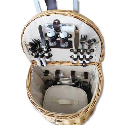 - Надзвичайно практичний і елегантний кошик для пікніка з лози, зі знімною термосумкою у вигляді додаткового відділення.