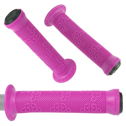 Легкі та зручні ручки BMX з високим коміром. Протектор з логотипом Dartmoor. Нова гумова суміш середньої м'якості з підвищеною стійкістю до стирання. В комплект входять заглушки.