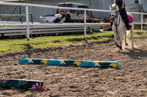 Вам цікаво, як коні реагують на м'які перешкоди? Коні набагато більше зосереджуються на барвистих перешкодах, не топчуть їх і охоче виконують вправи.