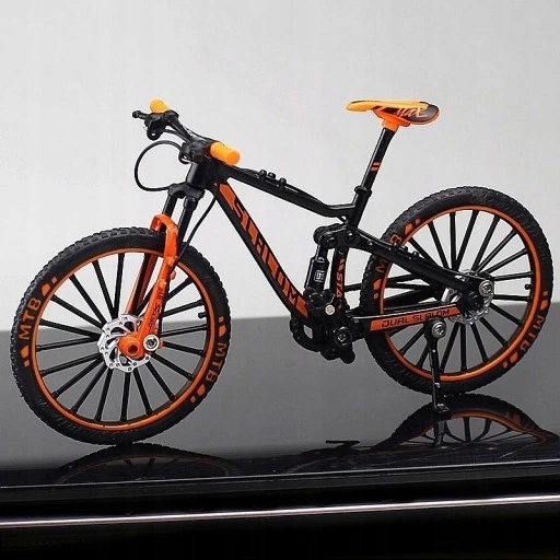 Масштаб реалістичної легкосплавної моделі гірського велосипеда 1:10, гарний вибір для гри, подарунка, колекціонування, прикраси Задня підвіска працює, передня жорстка, педалі ведуть заднє колесо.
