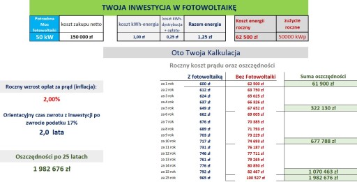 За поточними цінами на енергію: 1,2 злотих/кВт-год - 1,45 злотих/кВт-год