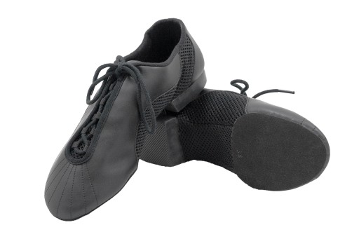 Підошва джазового взуття під пальцями оброблена замшевою шкірою (типу łosiówka), а каблук має гумовий супінатор.