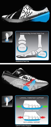 Підтримка бічних частин стопи забезпечує нейтральне положення передньої частини стопи та полегшує типові проблеми, пов’язані з надмірною пронацією та супінацією. Ці проблеми часто призводять до неправильного положення колін під час фази педалювання, що спричиняє травми та біль у спині.