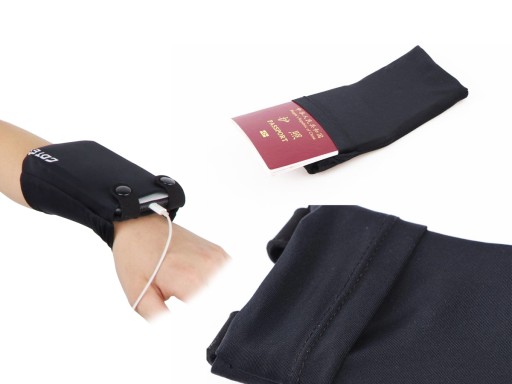 Завдяки застібці ми можемо протягнути кабель навушників через вільний простір. Крім того, ремінець також має закриту накладним матеріалом кишеню, в яку можна сховати, наприклад, ключі, гроші або картку банкомату.