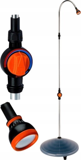 Подібно до сонячної батареї, базовий резервуар, підключений до мережі водопостачання та виставлений на сонце протягом приблизно 2 годин, нагріває воду, що міститься в ньому, до температури понад 60 градусів за Цельсієм. Ця вода, якщо її правильно змішати з холодною водою за допомогою міксера, дасть гарячу воду з температурою близько 30 градусів за Цельсієм. Ви можете отримати 7/8 розпилень протягом приблизно двох хвилин кожне, але якщо між одним розпиленням і наступним є проміжки в кілька хвилин, можлива кількість розпилень практично нескінченна. Клапан регулювання тиску, розташований в основі, дозволяє використовувати душ у повній безпеці та комфорті.
