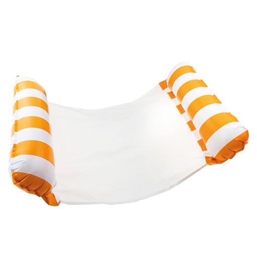 Він має надувний підголівник і підставку для ніг, які забезпечують достатню плавучість, а також спеціальні отвори, які дозволяють воді швидко та легко стікати, тому гамак не є надто важким і не накопичує воду. Монтаж простий і швидкий - просто розгорніть його, надуйте і покладіть на поверхню води.