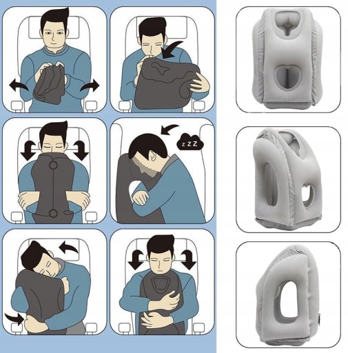 Подушка дозволяє зручно розташувати голову, щоб можна було відпочити і навіть поспати під час багатогодинної подорожі. Відстань для рук дозволяє тримати подушку на місці - таким чином вона не втече. Отвори відрегульовані таким чином, що ви можете приймати кілька різних положень під час відпочинку. Це також допомагає адаптуватися до навколишніх умов - ситуація в поїзді буде зовсім іншою, ніж в автобусі чи літаку.