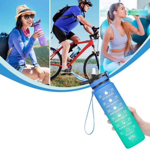Безпечний матеріал, велика місткість і мотиваційна мірна чашка - безсумнівні переваги цієї модної пляшки. Завдяки прикріпленому шнурку його легко носити, а стаціонарно встановлена соломинка дозволяє швидко і легко пити в будь-яких умовах.