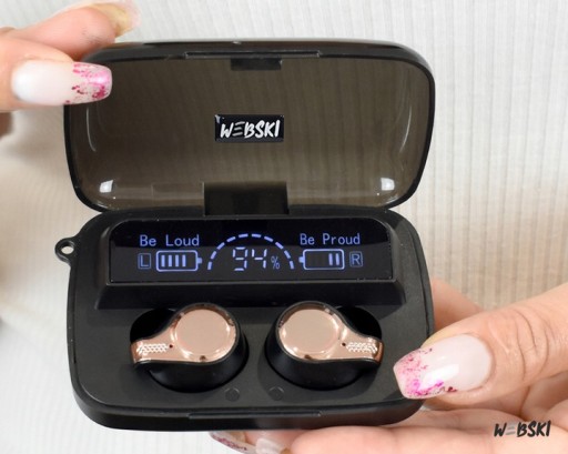 Видимий РК-екран показує стан зарядки навушників і відсоток заряду всього акумулятора. Коли навушники розрядяться, просто вставте їх у канали коробки, і вони автоматично почнуть заряджатися.