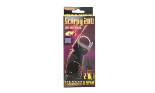 Електрошокер SCORPY 200 FOG є дуже ефективним засобом самозахисту, який діє як при прямому контакті з нападником, так і на відстані. Дана модель виготовлена чеським виробником обладнання та аксесуарів для нарядних служб - Euro Security Products. Пристрій має невеликі розміри та дуже простий та інтуїтивно зрозумілий у використанні. Він підходить для носіння в жіночій сумочці, кишені брюк, рюкзаку, нирці або кобурі або вільно прикріплений до елементів спорядження. Електрошокер живиться від акумулятора 9В, який видає напругу 200 000 В. Рівень безпеки. Більше того, ця модель має вбудований метальник перцевих балончиків, який дозволяє ефективно поцілити противника на відстані.