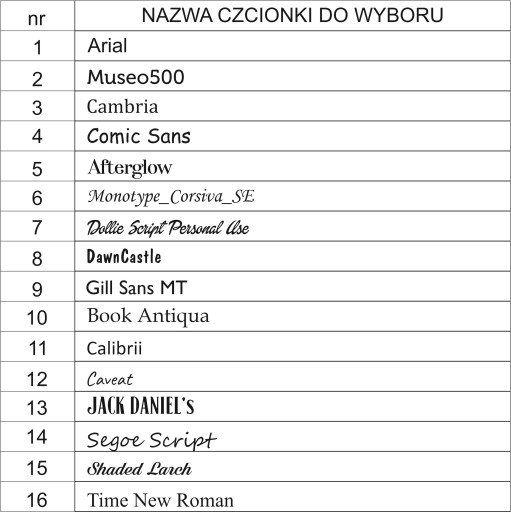 - Виберіть шрифт зі списку вище (введіть номер шрифту) ps. Якщо шрифт не вказано при замовленні, графічний дизайнер може вибрати будь-який шрифт самостійно