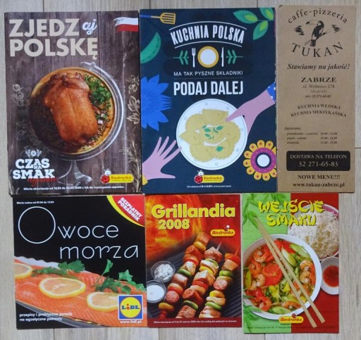 Додатково пропозиція страв на грилі та рекламний буклет ресторану Tukan у Забже та фрагмент каталогу Ikea зі стравами.