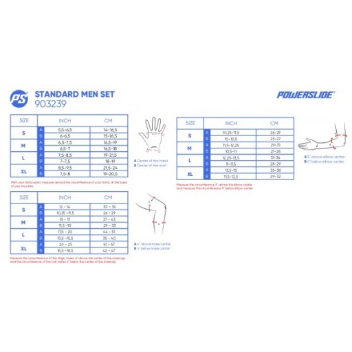 Протектори підбираються відповідно до будови тіла (вага і зріст). Нижче наведено таблицю із запропонованими розмірами: