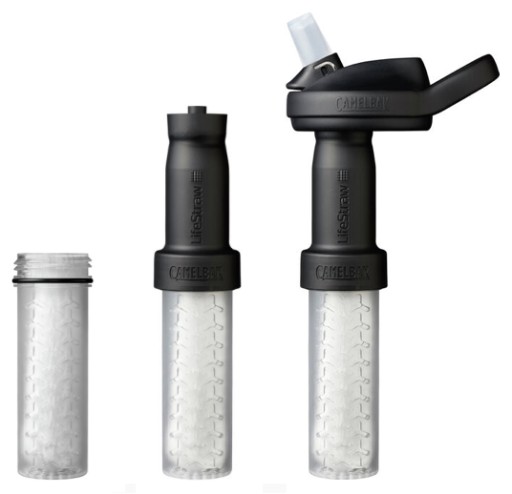 Фільтр із порожнистих волокон CamelBak Filtered by LifeStraw, який затримує 99,999% бактерій, найпростіших, лямблій, криптоспоридій та мікропластику. Він також містить іонообмінний фільтр, який ефективно видаляє свинець, хлор і органічні речовини, покращуючи запах і смак фільтрованої води.