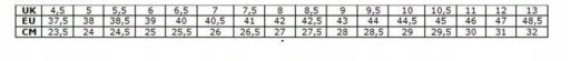 - Довжина вставок наведена відповідно до таблиці розмірів виробника
