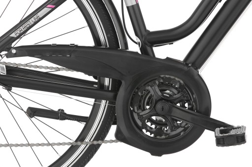 Їзда на велосипеді ще комфортніша, коли його конструкція збагачена амортизуючим елементом. Передній масляно-повітряний амортизатор також є перевіреним рішенням, заснованим на багаторічному досвіді, яке значно знижує вібрацію велосипеда під час руху по нерівній поверхні.