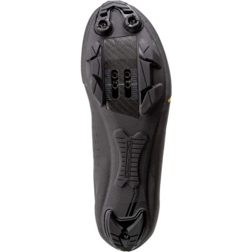 Підошва XC 12 з карбонового волокна з карбоновою вставкою в області педалей і індексом жорсткості 12,0. Вставки ТПУ в стратегічних точках забезпечують хороше зчеплення та виняткову зносостійкість