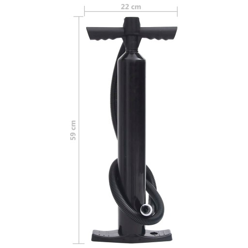 Практичний насос оснащений манометром високого тиску, який показує досягнутий тиск всередині дошки або човна в реальному часі. Тиск повітря можна точно контролювати і показує до 27,5 PSI. Зручна Т-подібна ручка дозволяє легко накачати SUP-дошку за допомогою міцного шланга, який входить в комплект помпи. Міцна конструкція з великою вбудованою підставкою для ніг створена для додаткової стабільності під час використання. Компактний і легкий корпус означає, що ручний насос займає мало місця.