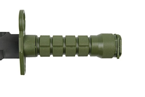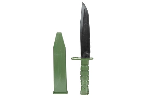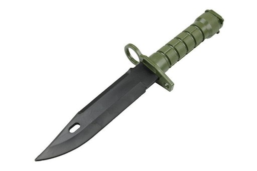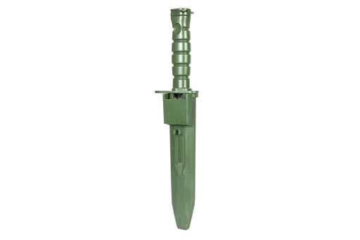 Копія багнета M9 Копія багнета, призначена для копій карабінів типу M16. «Лезо» виготовлено з міцного, але гнучкого пластику. Рукоятка покрита протиковзкою текстурою, що забезпечує надійне захоплення. Манекен багнета ідеально підходить для тренувань, інсценувань тощо. У комплект входить пластиковий чохол, що дозволяє кріпити його на поясі.