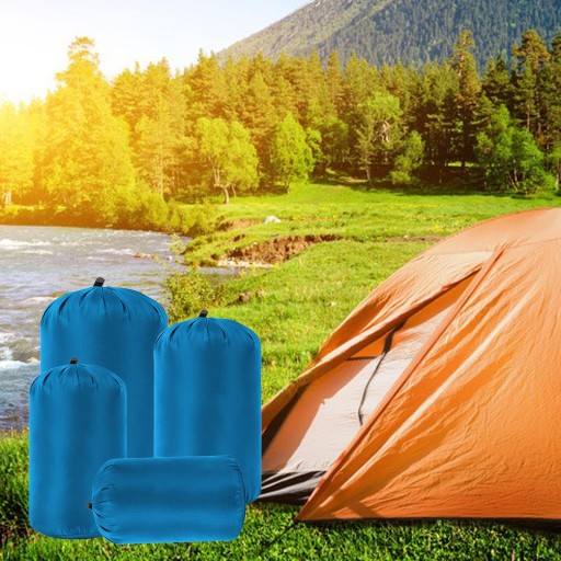 МІЦНИЙ: Компресійний мішок для спального мішка для кемпінгу на відкритому повітрі виготовлений з тканини з нейлоновим покриттям, ефективно запобігає проникненню вологи всередину, не збільшує навантаження під час кемпінгу, подорожей, походів та інших видів спорту на відкритому повітрі.