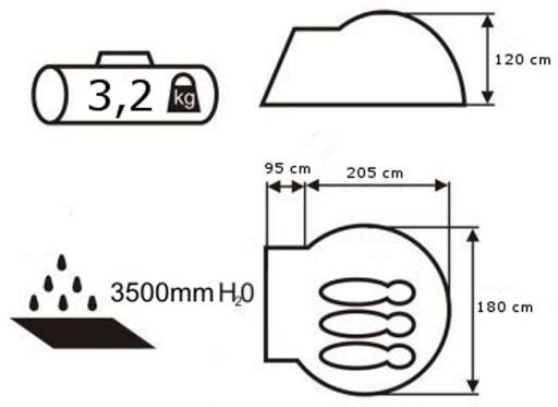 - всі шви проклеєні - розмір після складання: 95 + 205 x 180 x 120 см