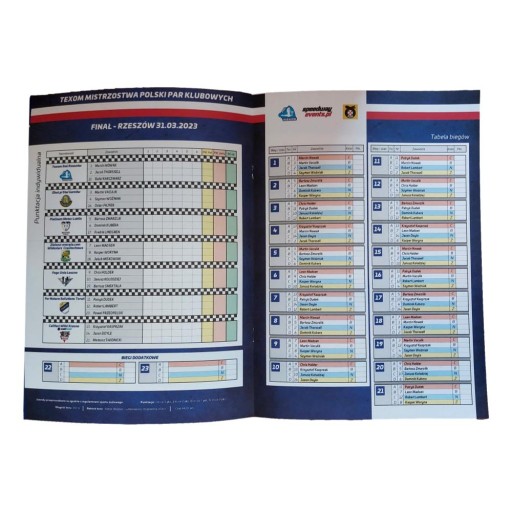 ПРОГРАМА ЗМАГАНЬ TEXOM POLISH CLUB PAIRS CHAMPIONSHIPS RZESZÓW 2 КВІТНЯ 2023 РОКУ.