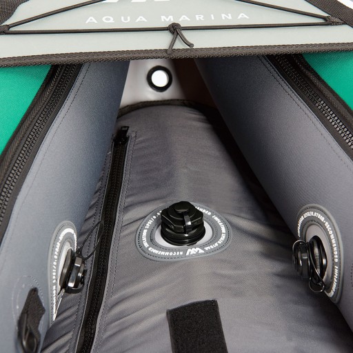 Надувна байдарка AquaMarina Recreational Kayak оснащена дуже міцною обшивкою корпусу з поліестеру і великим об'ємом простору. LAXO підходить як для початківців, так і для просунутих каякерів для використання на річках і озерах. Підлога і верхня частина корпусу бічних камер виготовлені з міцного поліестеру, що забезпечує високу міцність і жорсткість.