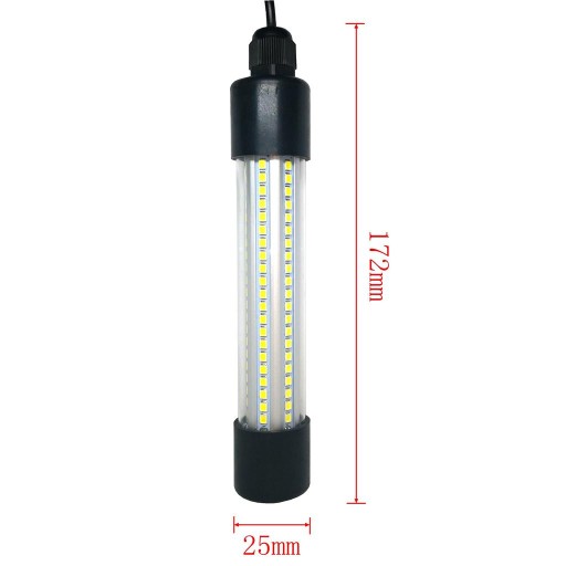 Це водонепроникний світлодіодний підводний ліхтар для риболовлі зі 126 кульками, класом захисту IP68, який приваблює креветок, кальмарів і рибу до бажаного місця. Підходить для прісної та морської води