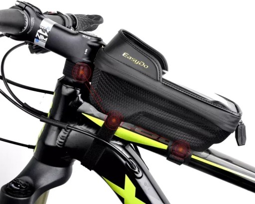 Додатково в сумці є два відділення, окрім одного для телефону. Для організації є основна кишеня, в яку можна легко помістити гаманець, ключі від квартири, міні-насос, набір мультитулів, запасні камери, і навіть є місце для міні-обіду. Ми можемо легко додати принаймні ще кілька білкових батончиків. Використання трьох опорних точок робить сумку надзвичайно надійною, і навіть у завантаженому стані вона не рухається на рамі велосипеда.