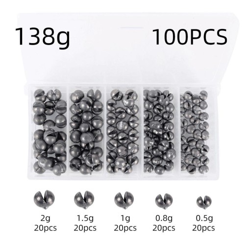 100/120 штук роздільного грузила 5 різних розмірів, які зберігаються в коробці з 5 відділеннями для легкого розпізнавання та організації