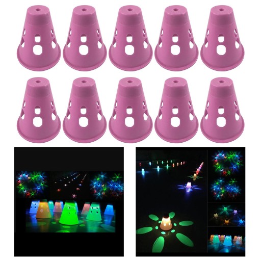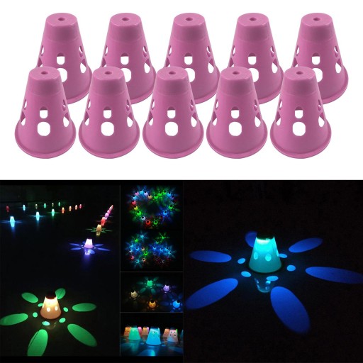 10 шт. Світлодіодні конуси для катання на роликових ковзанах зі світлодіодним підсвічуванням, рожеві