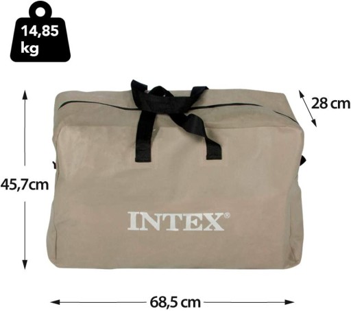 Байдарка розрахована на двох осіб і, маючи розміри 351x76x38 см, гарантує велику свободу пересування. Крім того, навколо байдарки є мотузка, щоб її було легше схопити в разі перекидання. Також в оснащення входять надувні сидіння. У набір також входять два алюмінієвих дуже міцних весла, які до того ж дуже легкі, ними можуть вільно користуватися жінки і навіть діти.