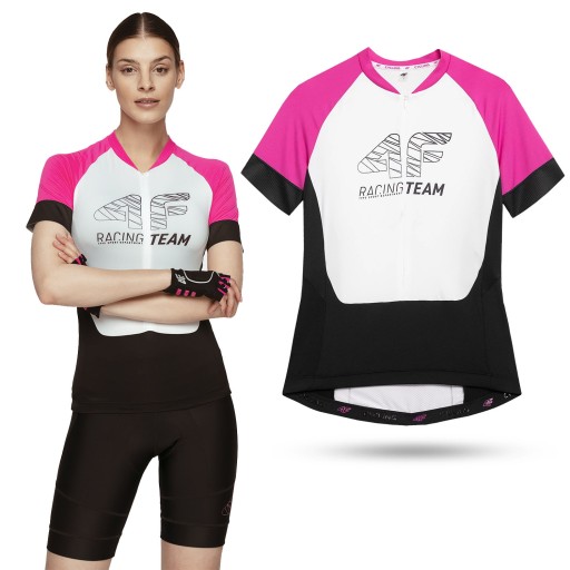 Жіноча велосипедна майка 4F. Виготовлений із синтетичних, швидковисихаючих матеріалів. Тканина 4FDry з термоактивними властивостями, оснащена сонцезахисним фільтром UPF 50+. Ззаду сорочка оснащена 3 відкритими кишенями для телефону, ключів та інших дрібниць. Жіноча веломайка, яка ідеально прилягає до тіла та гарантує високий комфорт під час катання на велосипеді. Гнучкі, приємні на дотик матеріали зроблять кожну поїздку приємною та комфортною навіть у найтепліші дні.