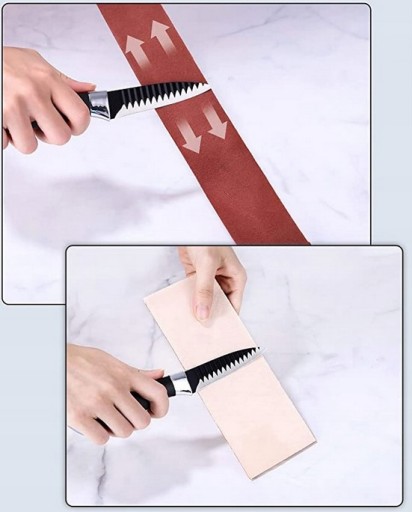 5. Отримавши очікувану гостроту леза, за допомогою смужки видаліть будь-які частинки матеріалу з ножа.