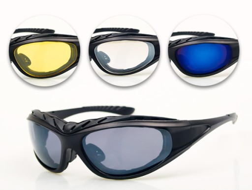 - В окулярах йдуть змінні лінзи - злегка затемнені, тоновані (сині REVO), жовті і безбарвні - злегка димчасті (плюс встановлені в окуляри затемнені лінзи).