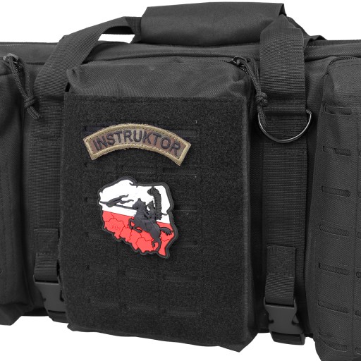 Найбільше відділення вміщує 2 довгі зброї (104 x 30 см). Завдяки липучкам і косим кишеням зброя не рухається під час транспортування. Додатково посередині є м'яка роздільна перегородка.