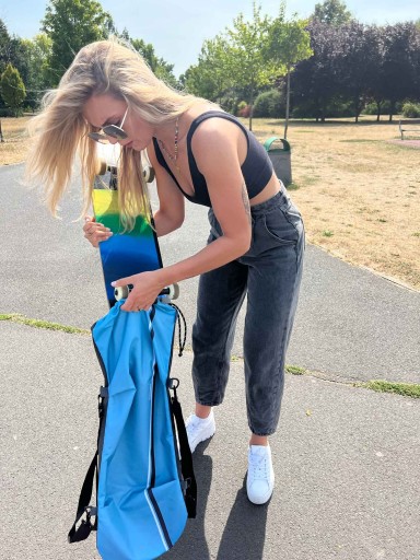 - Велике, містке відділення з міцної водонепроникної тканини для дошки або килимка для йоги